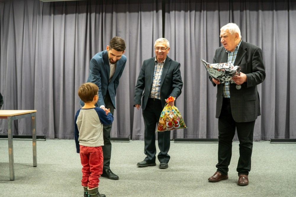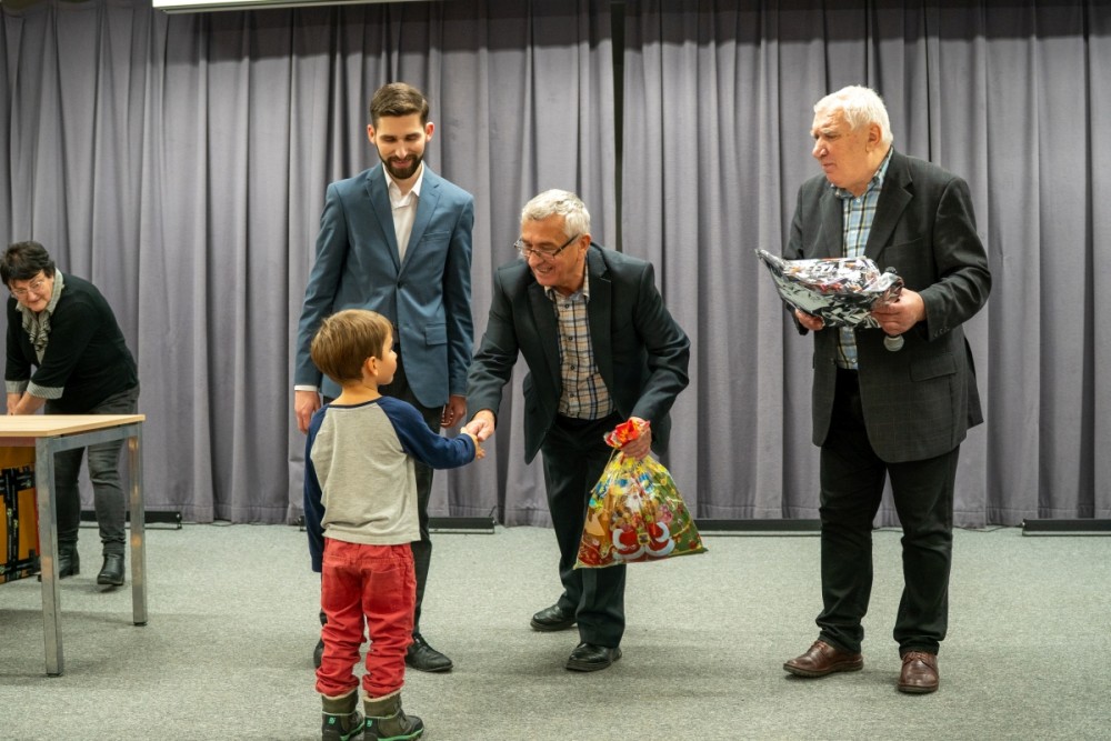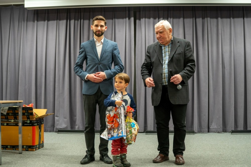 Najmłodsi uczestnicy z rąk pana Burmistrza Radłowa – Mateusza Borowca, prezesa Stowarzyszenia - Tadeusza Adamskiego oraz sędziów otrzymali paczki mikołajkowe.