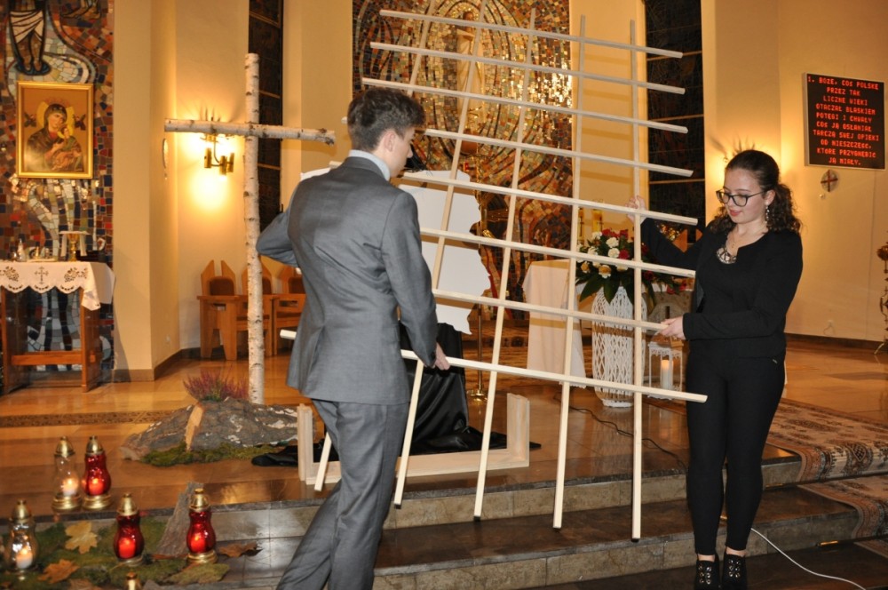 Dzień ten był niepowtarzalną okazją do refleksji nad współczesnością i historią naszej Ojczyzny. O godzinie 16:00 mieszkańcy Przybysławic i Pasieki Otfinowskiej spotkali się w parafialnym kościele w celu wspólnego uczczenia kolejnej rocznicy odzyskania przez Polskę niepodległości. Biesiada Patriotyczna to szczególne wydarzenie w naszej szkole i parafii, na które z niecierpliwością czeka wiele osób. Program patriotyczny przedstawili uczniowie i absolwenci szkoły. Był to niezwykły przekład Tajemnic Bolesnych Różańca Świętego w odniesieniu do walki dążącej do niepodległości Polski. Można się było i wzruszyć i pogrążyć w zadumie. W uroczystości uczestniczyli przedstawiciele kilku pokoleń – począwszy od uczniów szkoły, poprzez ich rodziców, rodzeństwo, aż po pokolenie seniorów. Wszyscy włączyli się do wspólnej modlitwy różańcowej za poległych w obronie naszego kraju. Program uświetnił występ wokalny parafialnej Scholi. Następnie odprawiono Mszę Świętą w intencji Ojczyzny, której przewodniczył Ksiądz Proboszcz Daniel Bubula, uczestniczyły w niej także poczty sztandarowe OSP Przybysławice i Pasieka Otfinowska.
