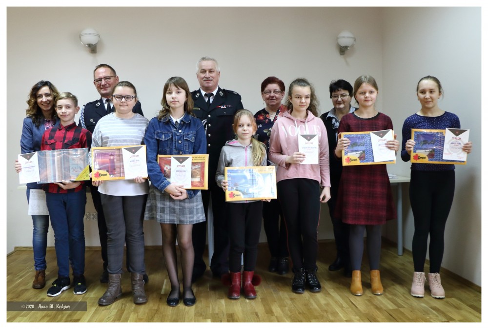 Po obejrzeniu 21 prac zgłoszonych na gminny konkurs „kiedy dzwonię po straż pożarna” w kategorii klas I-III przyznaje: