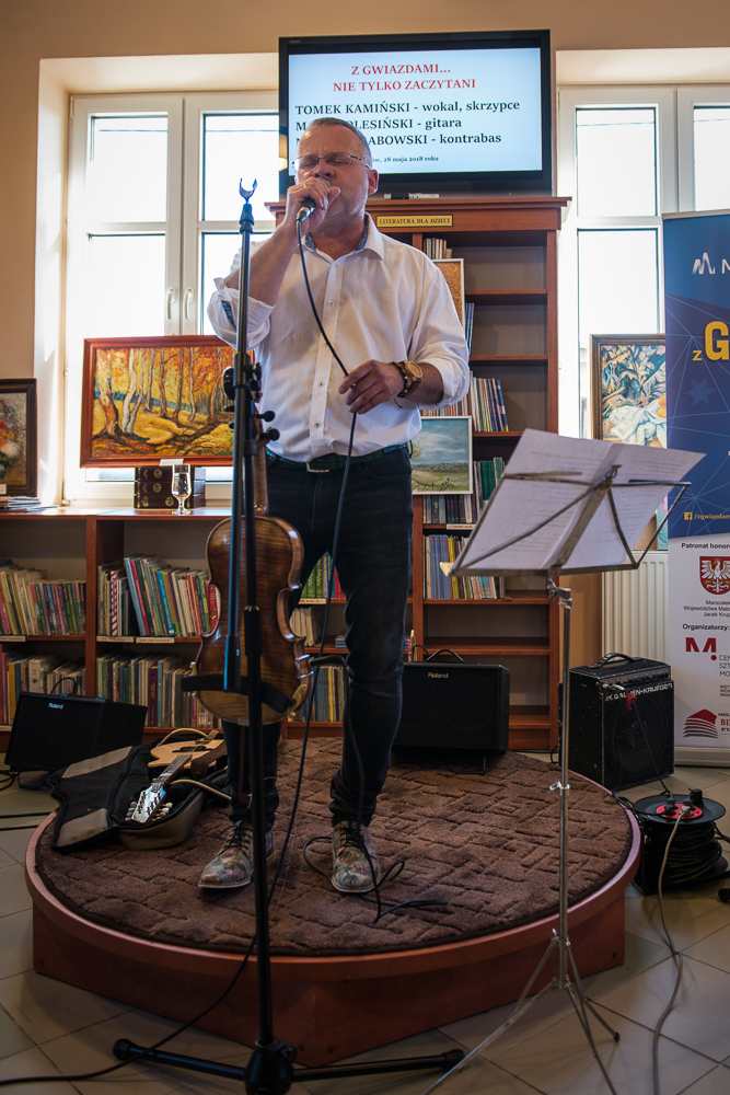 TOMEK KAMIŃSKI - muzyk bluesowy i jazzowy, jest jednym z niewielu w Polsce przedstawicieli stylu muzycznego określanego jako nurt autorskiej piosenki – muzyki z przesłaniem. Współpracował m.in. z legendarną grupą „Dżem”, „Nocną zmianą bluesa”, Grażyną Łobaszewską. Wydał liczne autorskie albumy oraz współautorskie. Jest też autorem podręcznika gry na skrzypcach oraz dwóch publikacji książkowych. Artyście towarzyszyli znakomici muzycy: Maciej Olesiński – gitara i Marcin Grabowski - kontrabas.