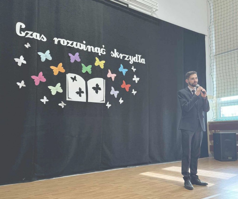 Podczas uroczystości Burmistrz Mateusz Borowiec podkreślił, jak ważne są takie chwile w życiu szkolnym i lokalnej społeczności.