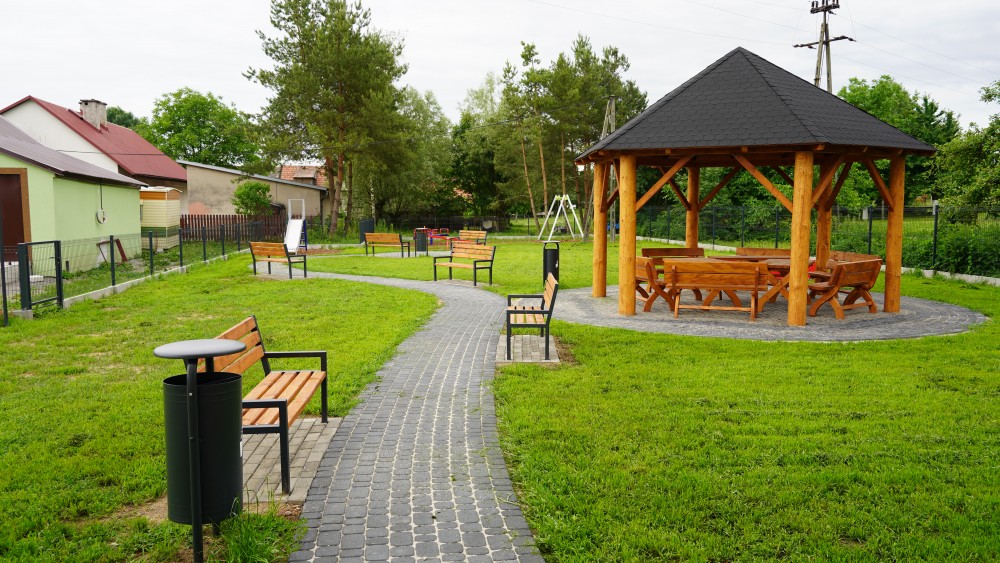 Na tę inwestycję przyznana została dotacja w wysokości 39 622,00 zł w ramach Programu Rozwoju Obszarów Wiejskich na lata 2014-2020 działanie 19.2, Rozwój ogólnodostępnej i niekomercyjnej infrastruktury turystycznej lub rekreacyjnej, lub kulturalnej. Plac zabaw wyposażony jest w huśtawki, karuzelę, piaskownicę, zjeżdżalnię, oraz ławki, kosze na śmieci i tablice informacyjne. Powstały chodniki z kostki brukowej oraz miejsca parkingowe, a także posadzono zieleń ozdobną. Teren został ogrodzony.