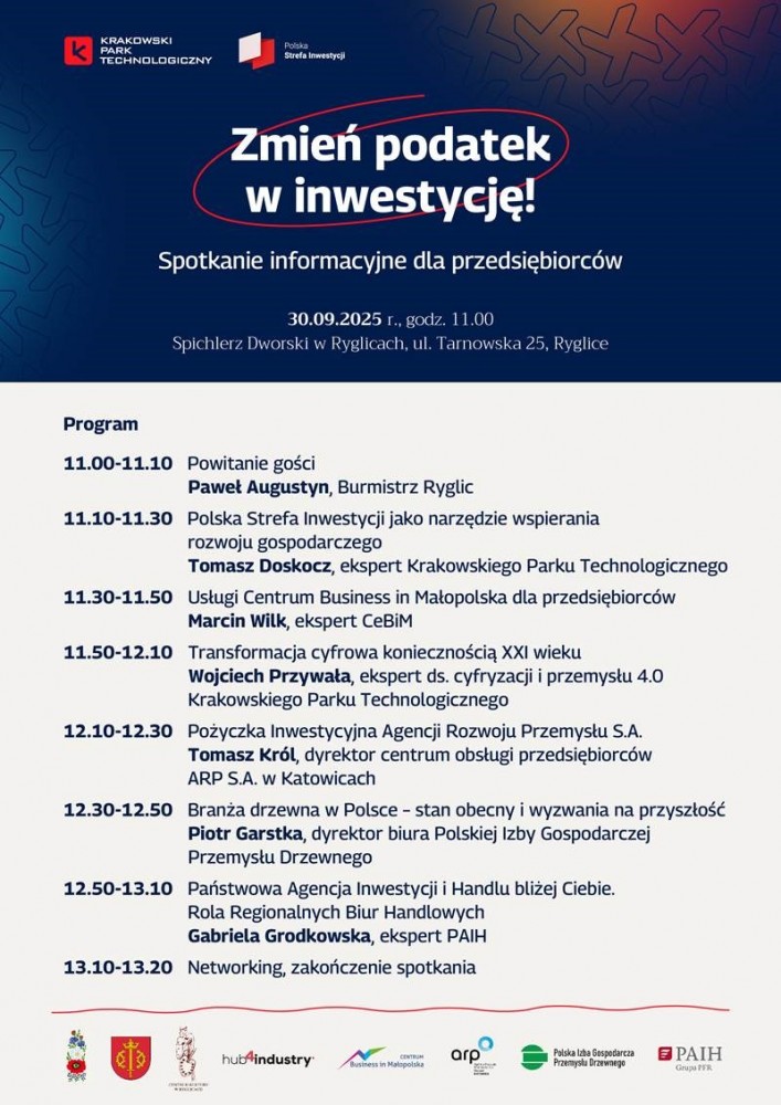 Serdecznie zapraszamy przedsiębiorców i nie tylko na spotkanie informacyjne ZMIEŃ PODATEK W INWESTYCJĘ