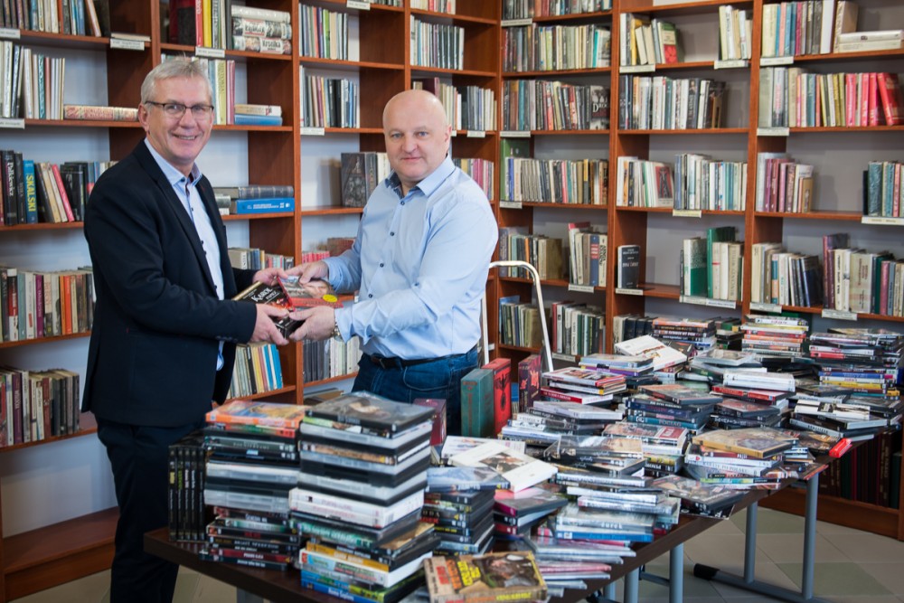 Kolekcję multimediów dla biblioteki odebrał burmistrz miasta Zbigniew Mączka, który w podziękowaniach, podkreślił sympatyczny i żywy kontakt T. Szczepanika z naszym miastem oraz chęć wspierania wiele ważnych inicjatyw.